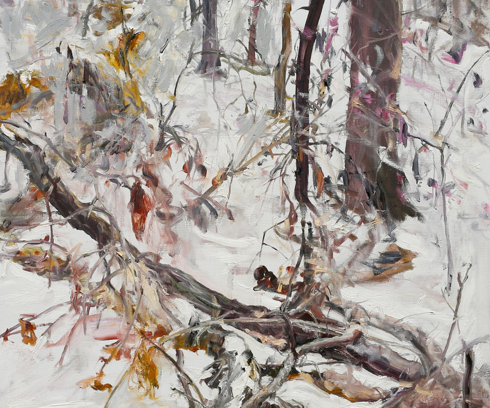 최근 산책에서 쓰러진 나무들이 더 잘 보이는 것은 아마도 산돼지 무리가 나뭇잎 사이를 헤집어 놓았기 때문일 것이다. 잡목과 낙엽더미들이 정리된 덕분에 누운 나무들이 내 눈에 들어왔다. ‘슬픔에 빠지지 마세요. 표면의 빛나는 얼룩을 보세요.’ ‘이 얼마나 찬란하고 또 허망한가’ 그림을 시작하기도 전에 위와 같은 문장이 떠올랐다. (2024년 10월 6일)