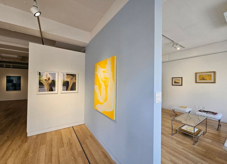 His work communicates through a distinctive painterly sensibility that plays with the viewer's perception: while a close-up view reveals only the raw materiality of the mixed media on the surface, a mysterious and evocative image emerges like magic when viewed from a distance.