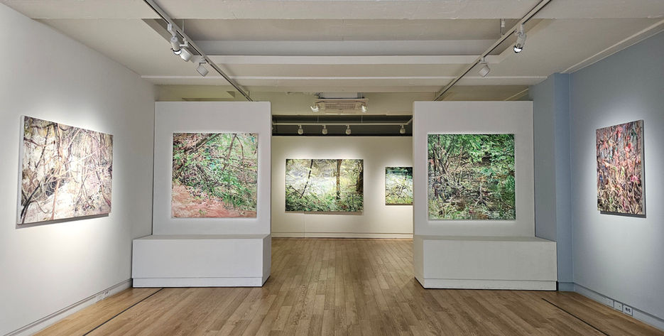 Radiant Yet Ephemeral By Park Young-taek (Professor at Kyunggi University, Art Critic) ________________________________________ “I honestly paint what is interesting in all the possible things I can paint.” (Jonas Wood) ________________________________________ 1.The artist Chung Sang-gon painted landscapes encountered during his walks on Daejisan Mountain, which is located near his studio. As his gaze penetrates directly into the interior of the mountain, the partially constrained woods and thickets, along with the ground, surge toward his vision in a dizzying array. The landscape sways, and the canvas vibrates amidst the rapid, impassioned brushstrokes and the aggregated mass of neutralized colors. These are the movements that trace the natural forms and rhythm of the indiscriminately gathered branches and grasses. He translates the immediacy of a specific location into the improvisation of the painting. I consider him an artist who rejects pre-determined meaning and interpretation and paints instead from the realm of materiality and direct experience. He seems to have had a compelling encounter—something that shook him—in the nature or lives he met along his walking path. Such an experience speaks of a 'poetic moment' where language and words cease, where they are rendered impotent. He attempts to render a newly possible, fresh landscape painting—one that overcomes the genre's inherent clichés—by capturing: something that strikes the human spirit; the dazzling experience and impression that transcends all conventional laws of nature; nature as an incomprehensible and opaque world, not a purely self-evident one; and, simultaneously, reflections on a landscape read through an anthropized gaze. These attempts appear to be a search for a way to capture the material exchange or reaction (which cannot be translated to concepts or language) or the world of reality and objects (which can be sensed by the body), and also a process of exploring a trajectory that is fundamentally different from existing interpretations of landscape. The artist prioritizes the realization of ambiguous sensations or sensibilities over concrete concepts. Nature is not captured by a priori knowledge or information. His painting becomes the realization of the sensation felt through one's own body and flesh when confronting that inscrutable landscape. This is not the mere representation of an object, but an act of expressing the appearance of things as perceived in space, and of scooping out the ceaselessly fluxing space that was experienced through the act of painting. 2.The artist does not view nature from a purely contemplative standpoint. His gaze perceives nature as a living entity. Because of his close engagement with the subject, viewers strongly feel the presence of these elements before their eyes. The paintings contain trees and grass, but they are truly aimed at the light and color of the four seasons. His canvas is not merely occupied by specific objects; simultaneously, numerous traces of the act of painting these objects heavily emerge. The background, paint layers, brushstroke remnants, and a variety of intersecting lines are breathtakingly displayed. The wriggling brushstrokes and sharp lines traverse the surface in disarray, creating the illusion of movement. This is akin to the concept of the 'stroke' (hoek), a trace carrying the artist's sensation or sensibility. Every mark contains the memory of a particular movement. Thus, these marks are the traces of what he saw, the vestiges of an attempt to capture the impression and emotion triggered by the object and the physical gestures or brushwork of an endeavor to accurately render what was seen and felt. In his paintings, which record the rhythm imbued by nature with sharp and incisive brushstrokes, I am freshly reminded of the force of the brush (pill-yeok) and the power/momentum (se) encountered in Oriental paintings. All his acts of painting with the brush ultimately target the vibrant stroke, the one that draws out the essence of the subject. Above all, the sharp, keen lines of the tree trunks dance and extend, illustrating a vibrant and dynamic portrayal. Moreover, he attempts to express everything with a limited palette. In this work, which seeks another dimension of expression within the intentionally set constraints of color, what is important to him is not the color itself but prompting a reflection on the meaning that the color conveys. While his paintings contain concrete objects, these objects are reduced to and scattered as materials. Simultaneously, the coalesced matter shows traces that still evoke the external world. This landscape, a blend of figuration and abstraction, of images and materials, converges into a narrow space. It simultaneously evokes the two-dimensional plane while dynamically and generatively activating it. 3.Chung Sang-gon’s landscape soberly depicts only trees and grass; these are fragments of a scenery excised from the world. The landscape is extracted from a specific location on Daejisan Mountain, representing something that left a powerful impression on the artist. However, what the artist painted and represented is not the mere exterior of a specific object, but everything within the artist himself that was triggered by it. The external world surrounding us approaches as the other ones, unknown and unfamiliar. The object, nature, is what cannot be named or fully known. Nature cannot be wholly represented. The beauty of nature is also an extremely mysterious domain. Consequently, artists who imitate nature and are captivated by its beauty despair at the varied forms and countless colors that nature holds in gestation. Painting exists between that despair and the challenge. Chung Sang-gon’s painting also trembles along this line. This painting is only possible through the internalization of the landscape's spirit and soul—a drawing that stems from the artist's direct incorporation of the confronte